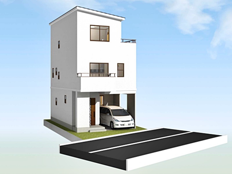 【分譲済】東南角地に面したシンプルなデザインの新築分譲住宅